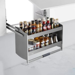 The lift-up basket was chosen to make better use of the high cabinet space.